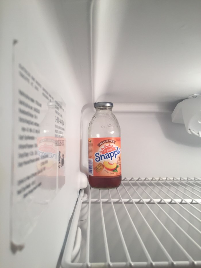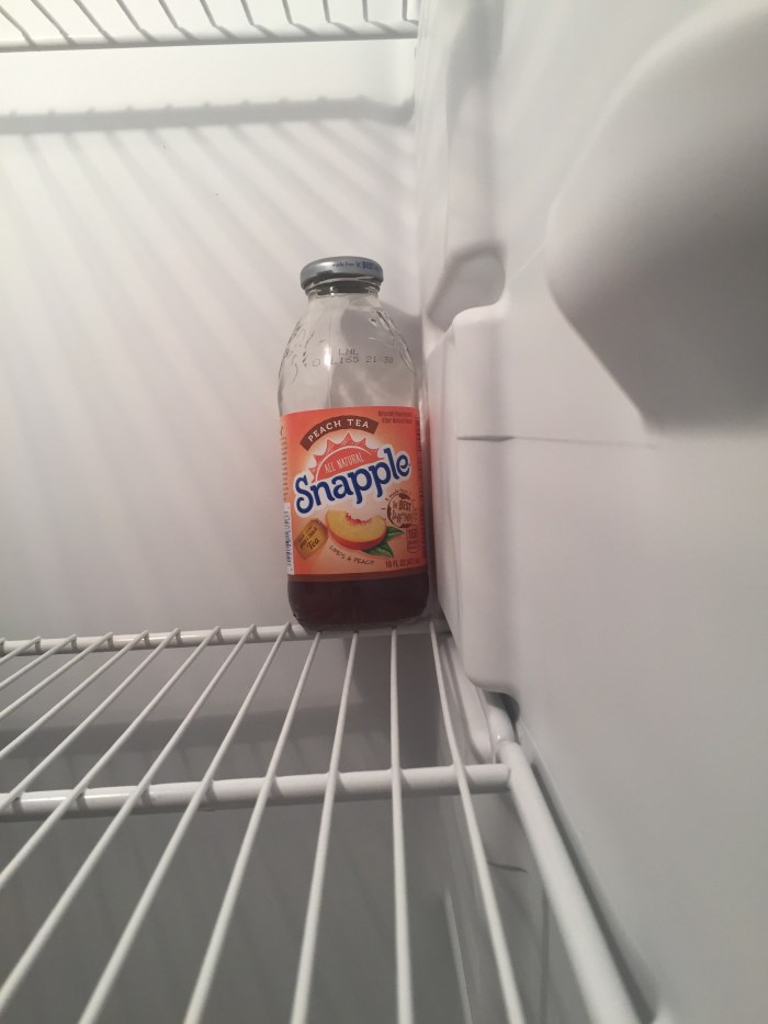 For the non linear series, which I thought was much more difficult, I decided to clear the three shelves of my fridge and put take a photo of a Snapple bottle in each of the corners of the fridge. This is kind of Duchamp-esque, but I see more in he open space than in the Snapple bottle. I would think the fridges owner loves Snapple so much that it is quite literally on top of the shopping list every other week. It doesn’t matter what order you put them in, but after looking at the six of them I think the viewer can asymmetrical they’re all from the same fridge and deduce the great value of Snapple to the fridges owner.